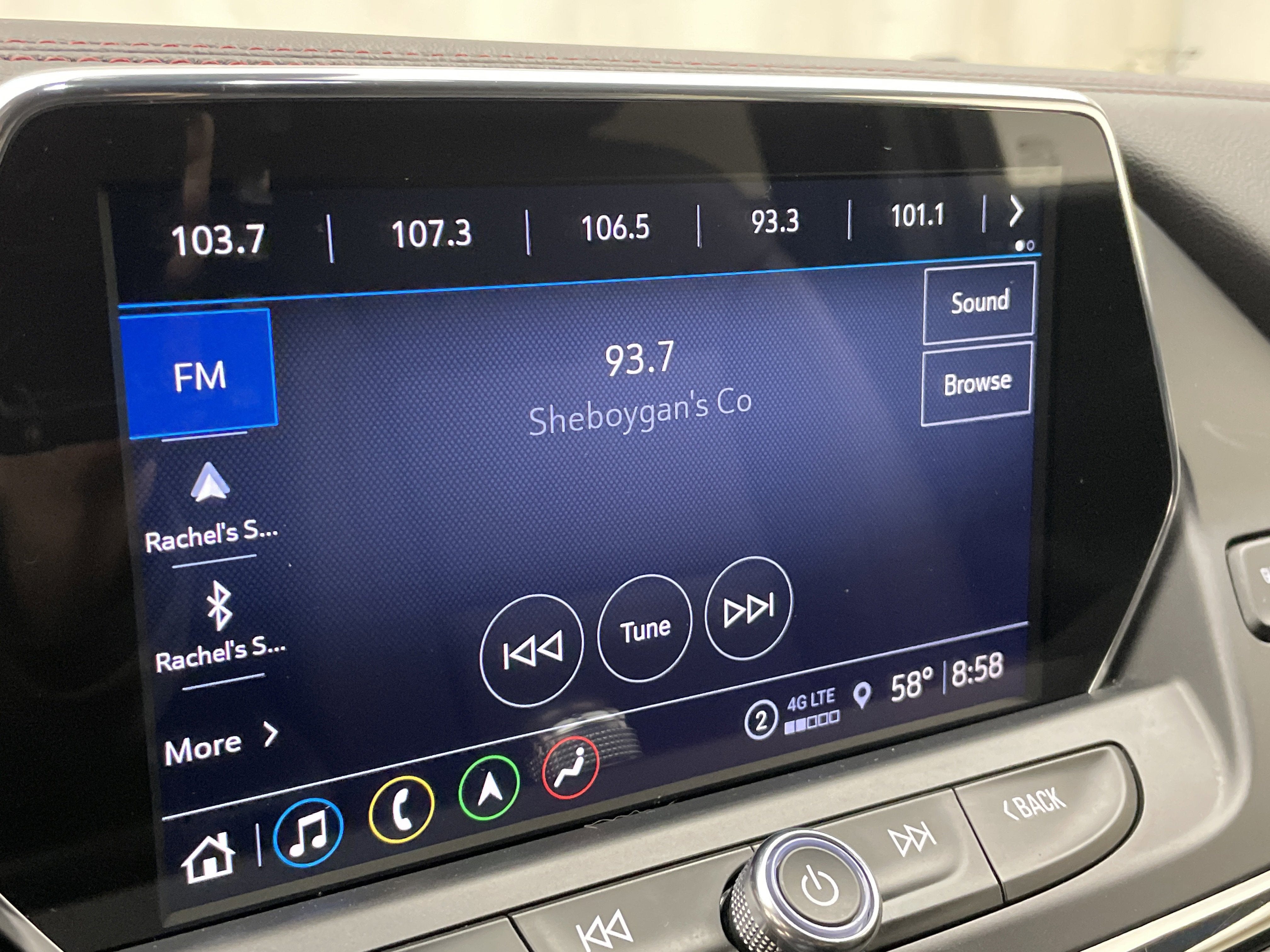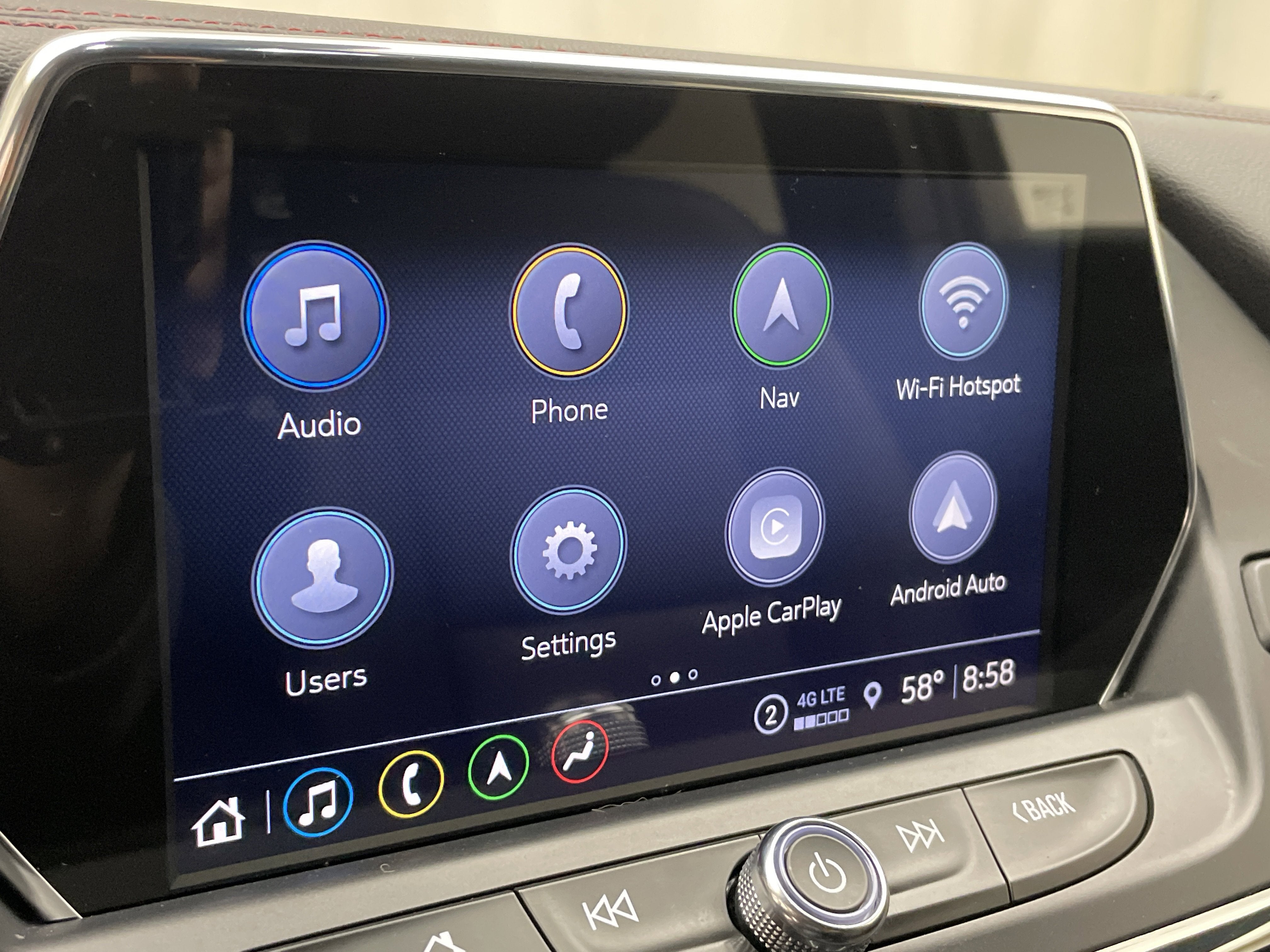 - Audio system, Chevrolet Infotainment 3 Plus system with connected Navigation, 8" diagonal HD color touchscreen, AM/FM stereo, Bluetooth® audio streaming for 2 active devices, Apple CarPlay and Android Auto capable, enhanced voice recognition, in-vehicle apps, cloud connected personalization for select infotainment and vehicle settings. Subscription required for enhanced and connected services after trial period.