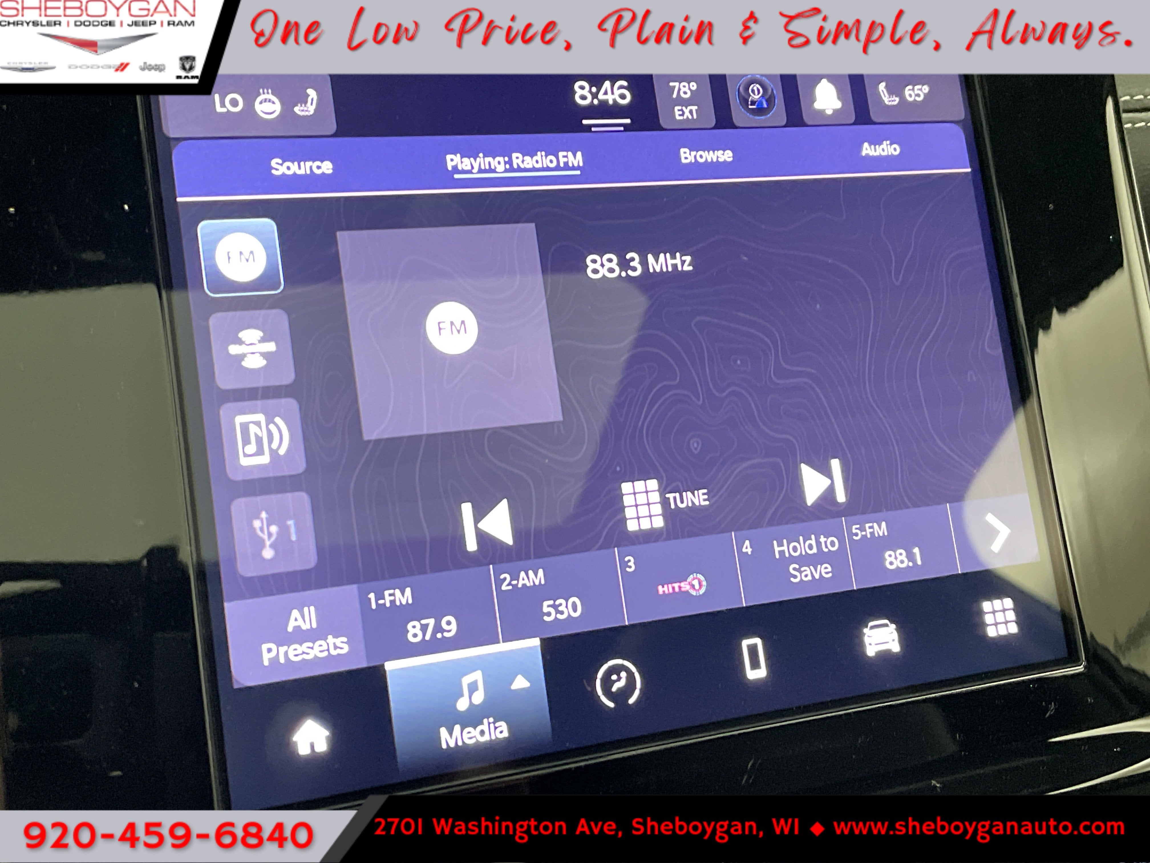 - Radio w/Seek-Scan, Clock, Speed Compensated Volume Control, Aux Audio Input Jack, Steering Wheel Controls, Voice Activation, Radio Data System and Uconnect External Memory Control
